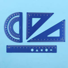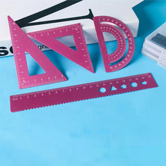 Custom High-quality School Color Plastic Triangle Ruler Protractor 12 Inch Ruler Set 4 Pieces Geometric Ruler Set