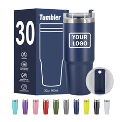 30oz Tumbler Cups Blue Vacuum Stainless Steel Tumbler with Straw Custom Laser Logo Travel Mug OEM Simple Modern Cup