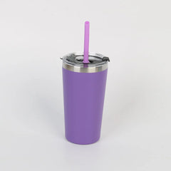 Custom Logo 12OZ Double Wall Stainless Steel Milk Cup Small Capacity Coffee Beer Mug With Straw