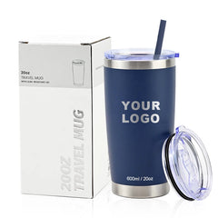 Custom Logo Powder Coated Double Wall Stainless Steel Cup Travel Coffee Tumbler 20 oz Insulated Mug with Lid