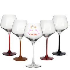Copas de vino tinto de cristal de lujo hechas a mano con logotipo personalizado, estilo americano, color del tallo personalizable e irrompibles.