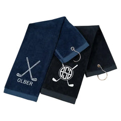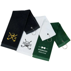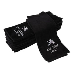 100% Cotton Custom Golf Towel with Single Side Cut Velvet Hook Personalized Embroidery Black Sports Towel on Promotion