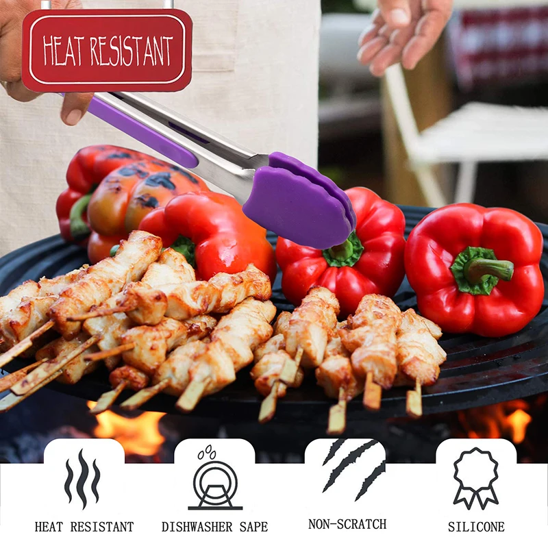 Utensilios de cocina de 7/9/12 pulgadas, pinzas de silicona sin BPA para servir alimentos, pinzas para cocinar en barbacoa, pinzas de acero inoxidable 304 con cierre.