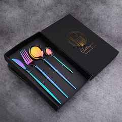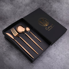 Cubiertos de acero inoxidable estilo portugués: juego de regalo creativo de 4 piezas con cuchillo, tenedor y cuchara de postre para carne, con opción de logotipo personalizado.