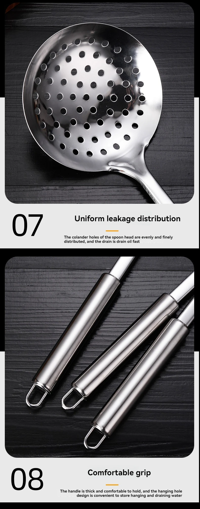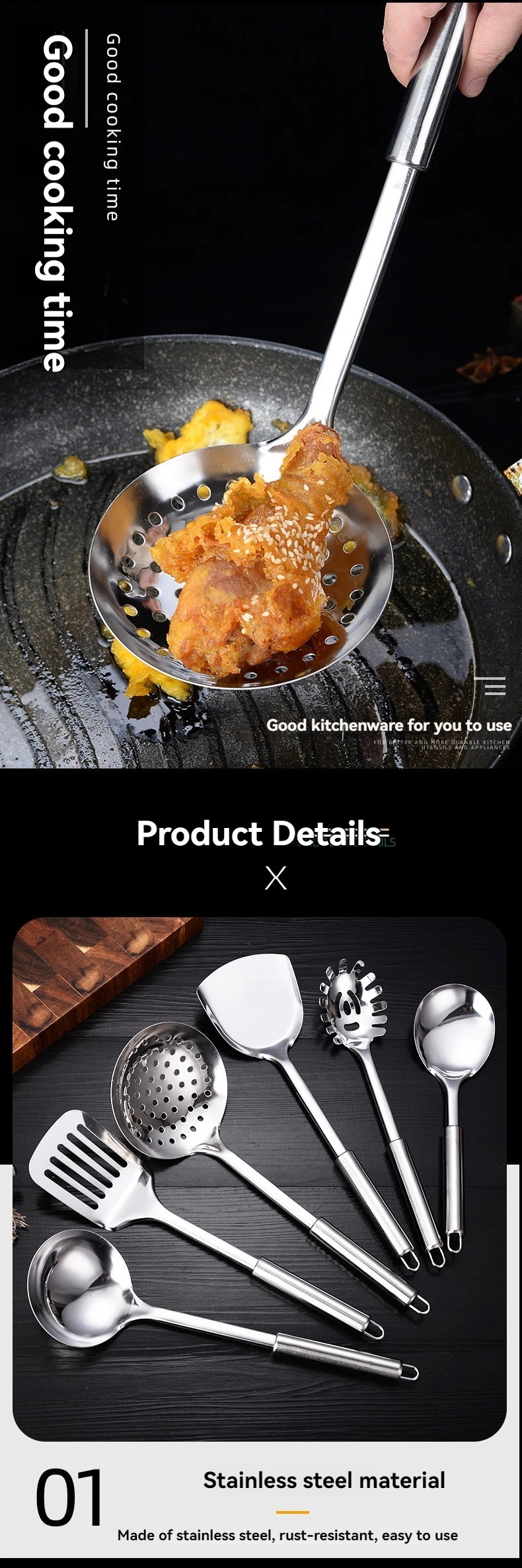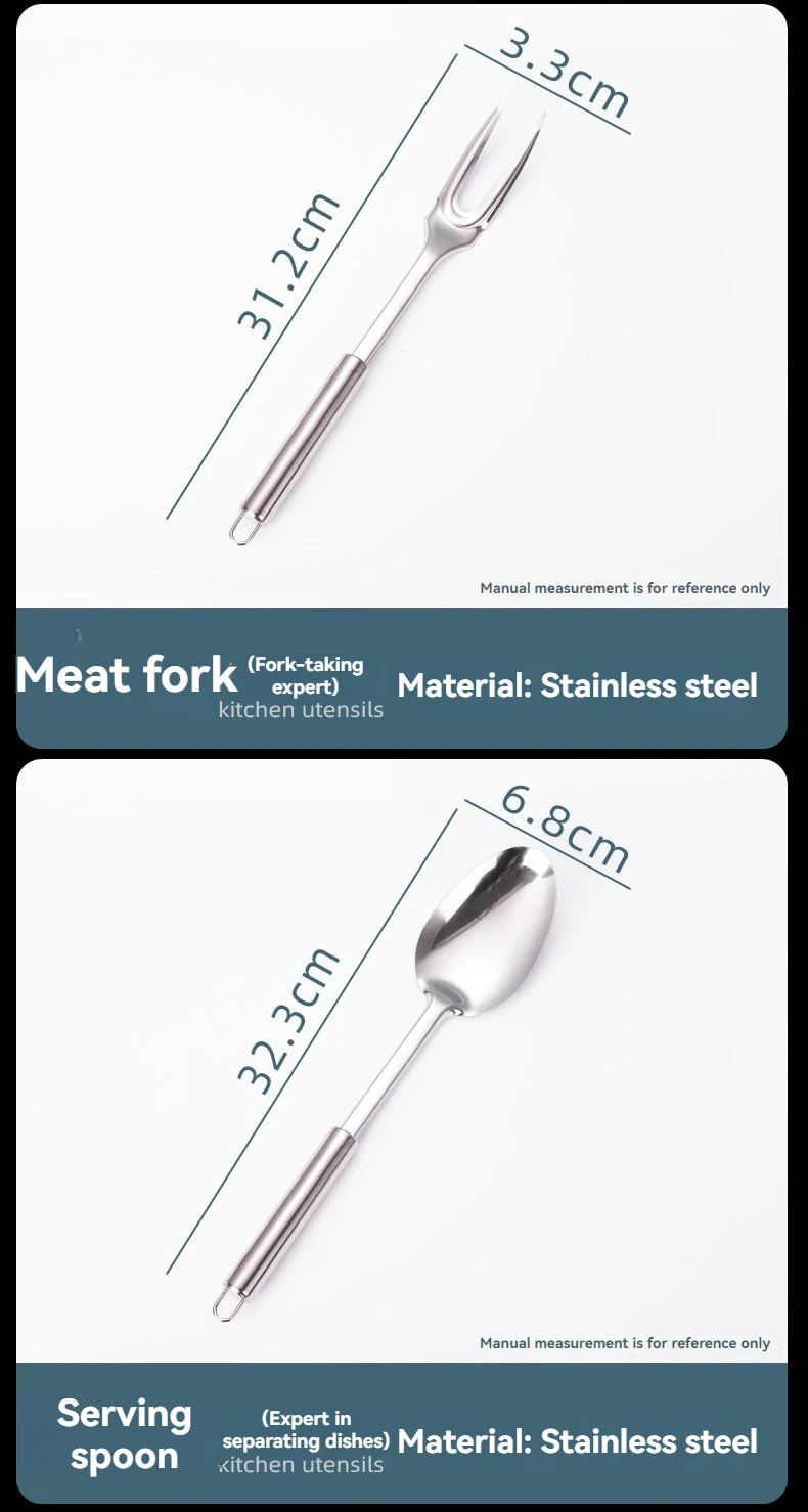 Cucharas de acero inoxidable más vendidas, cucharones para servir, tenedores, productos de cocina, utensilios, juego de utensilios de cocina