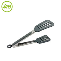 Espátula ranurada de acero inoxidable antiadherente de 9" con pinzas de bloqueo y punta de silicona