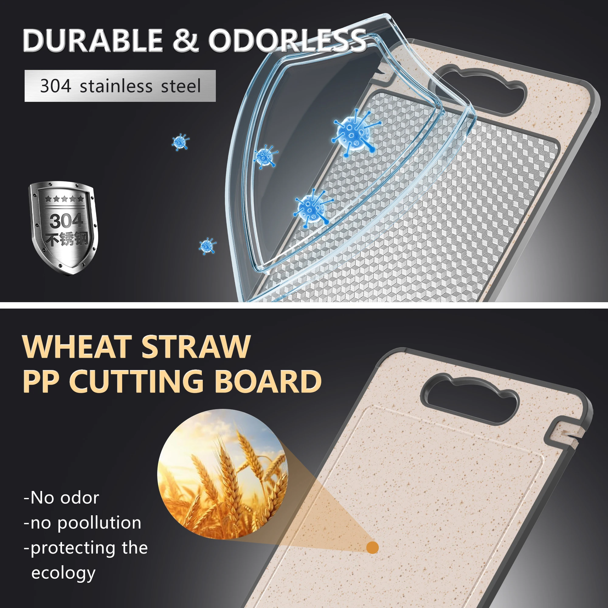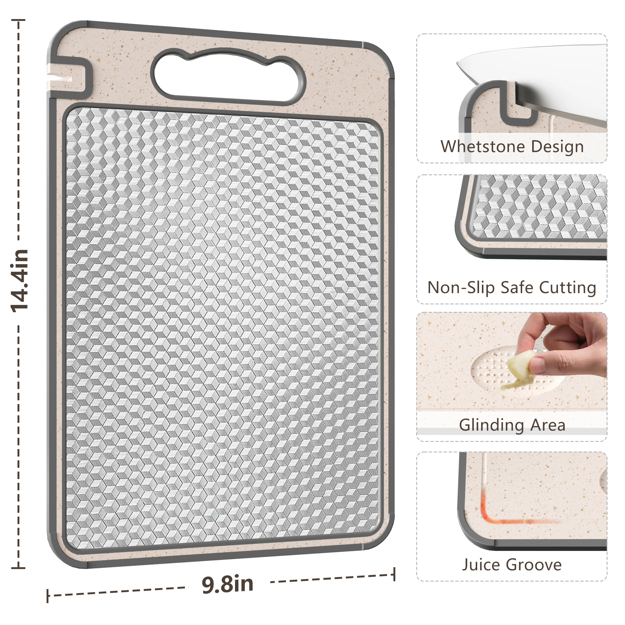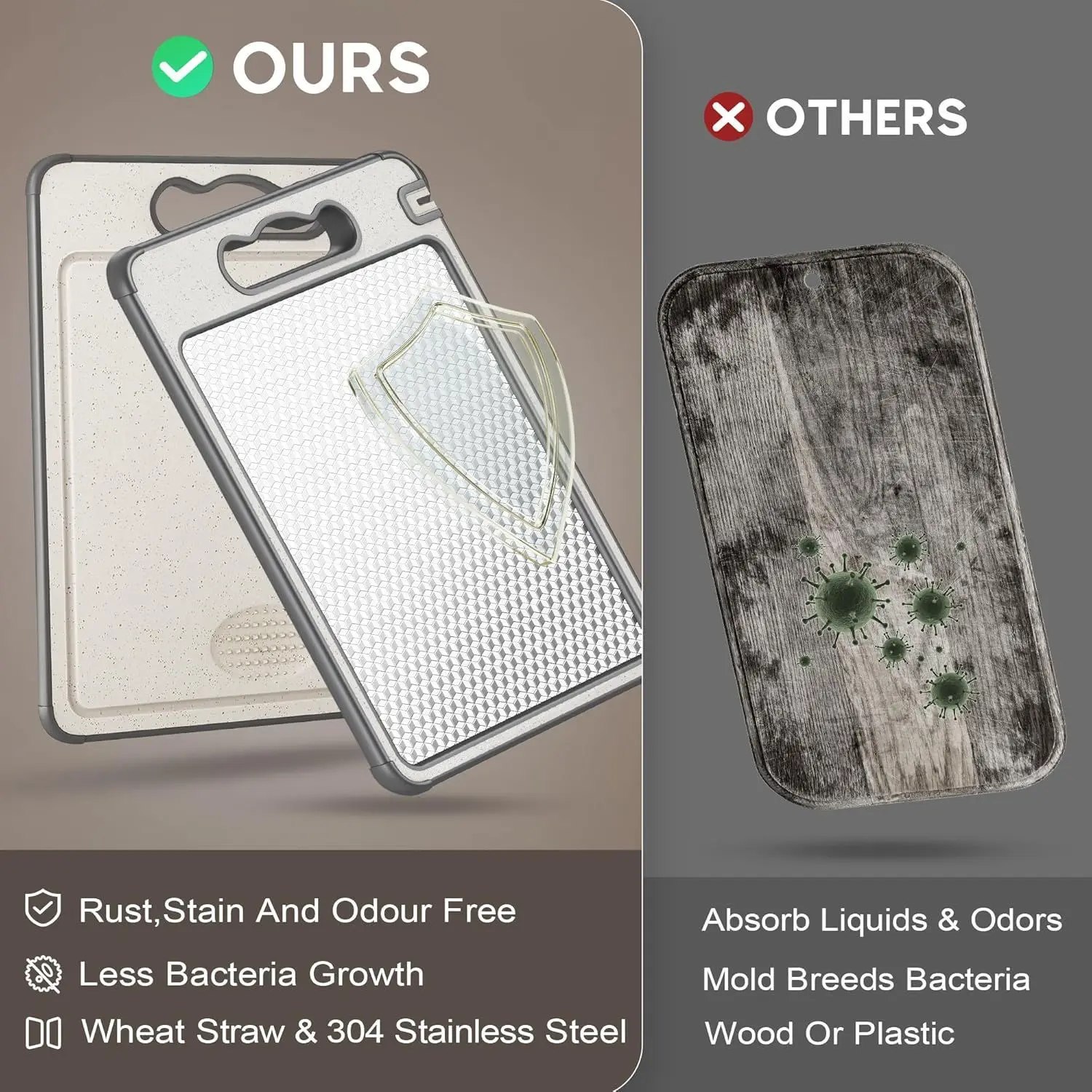 Tabla de cortar de acero inoxidable de doble cara y paja de trigo multifuncional 4 en 1