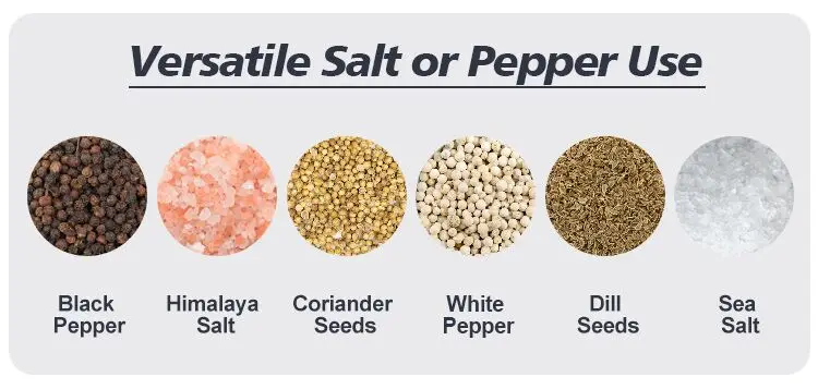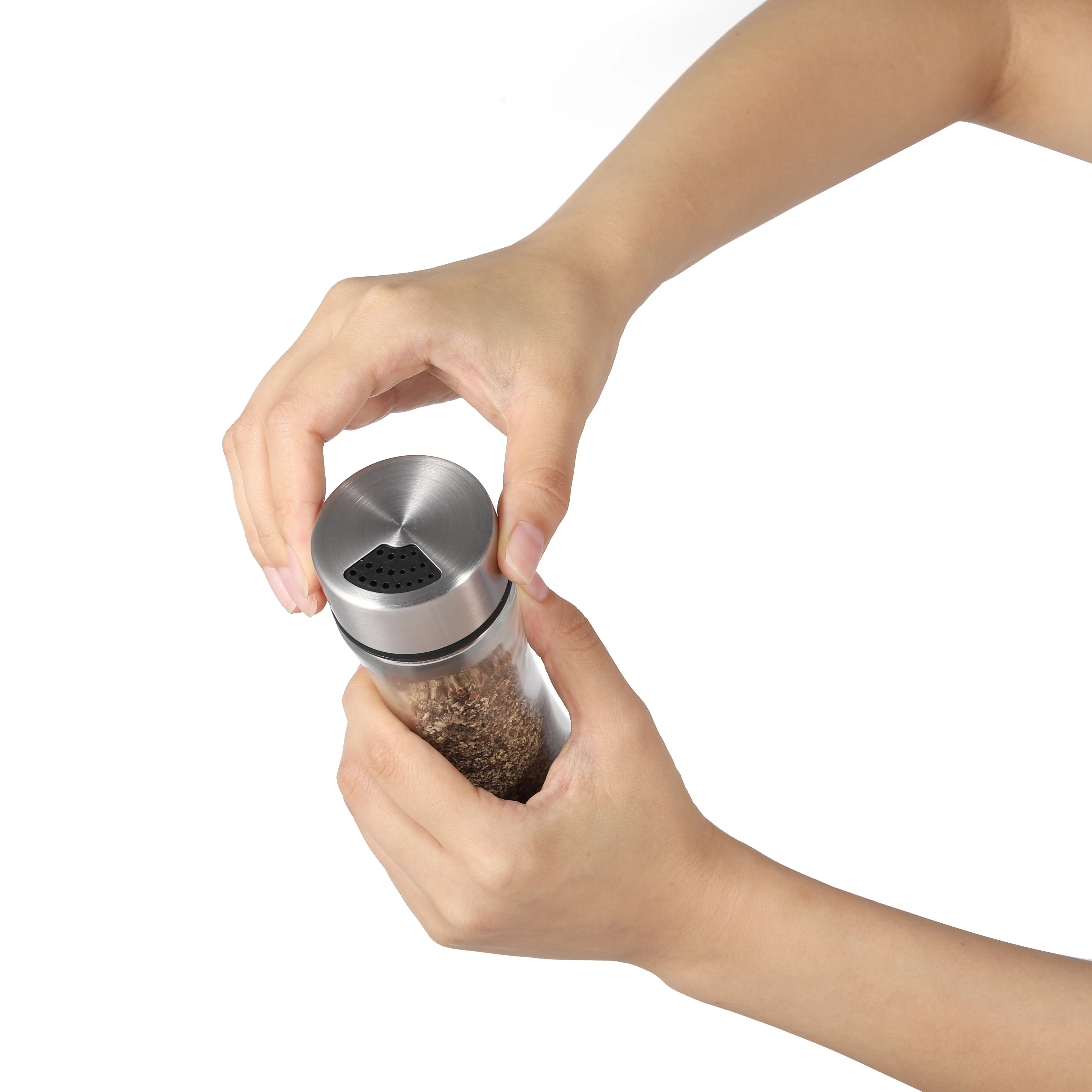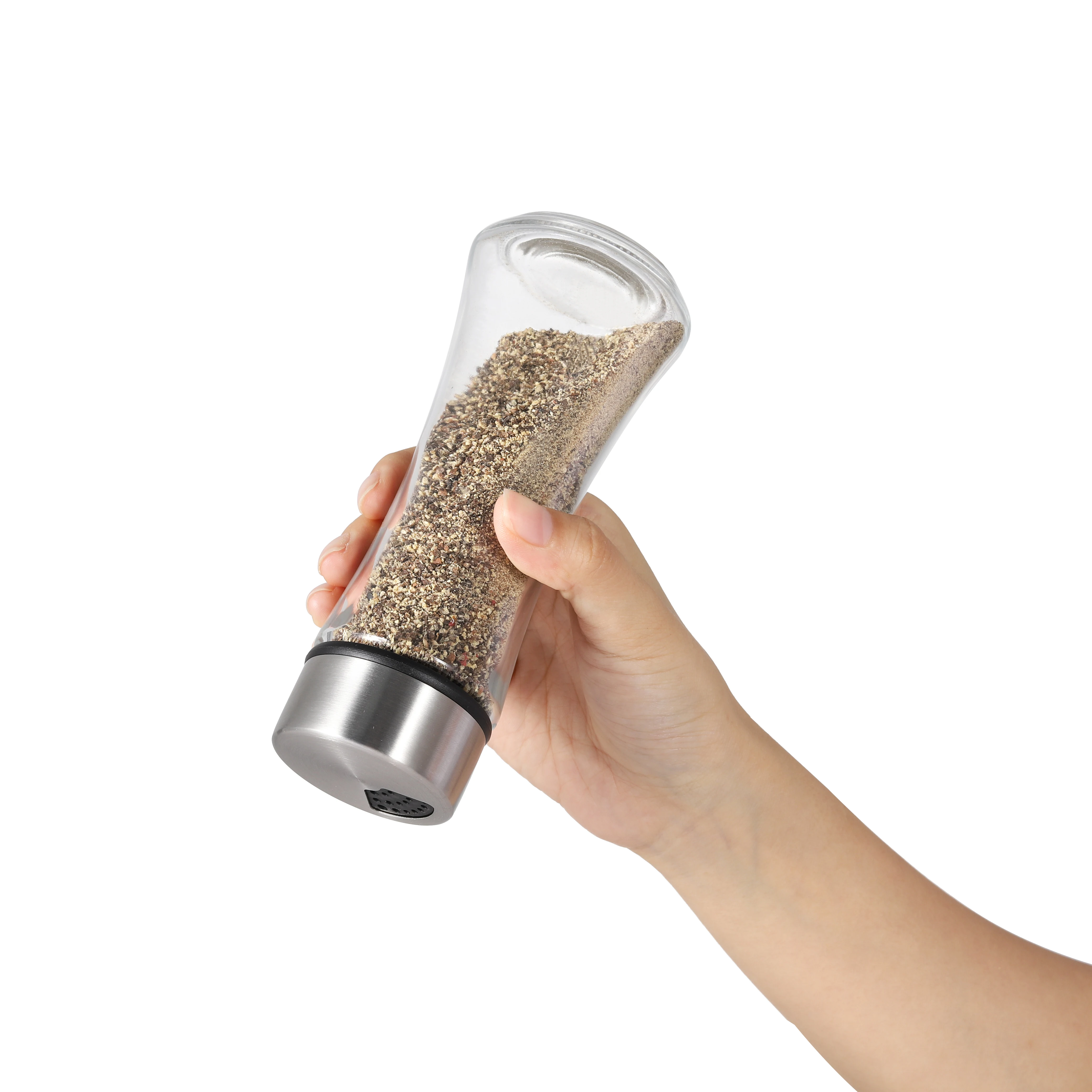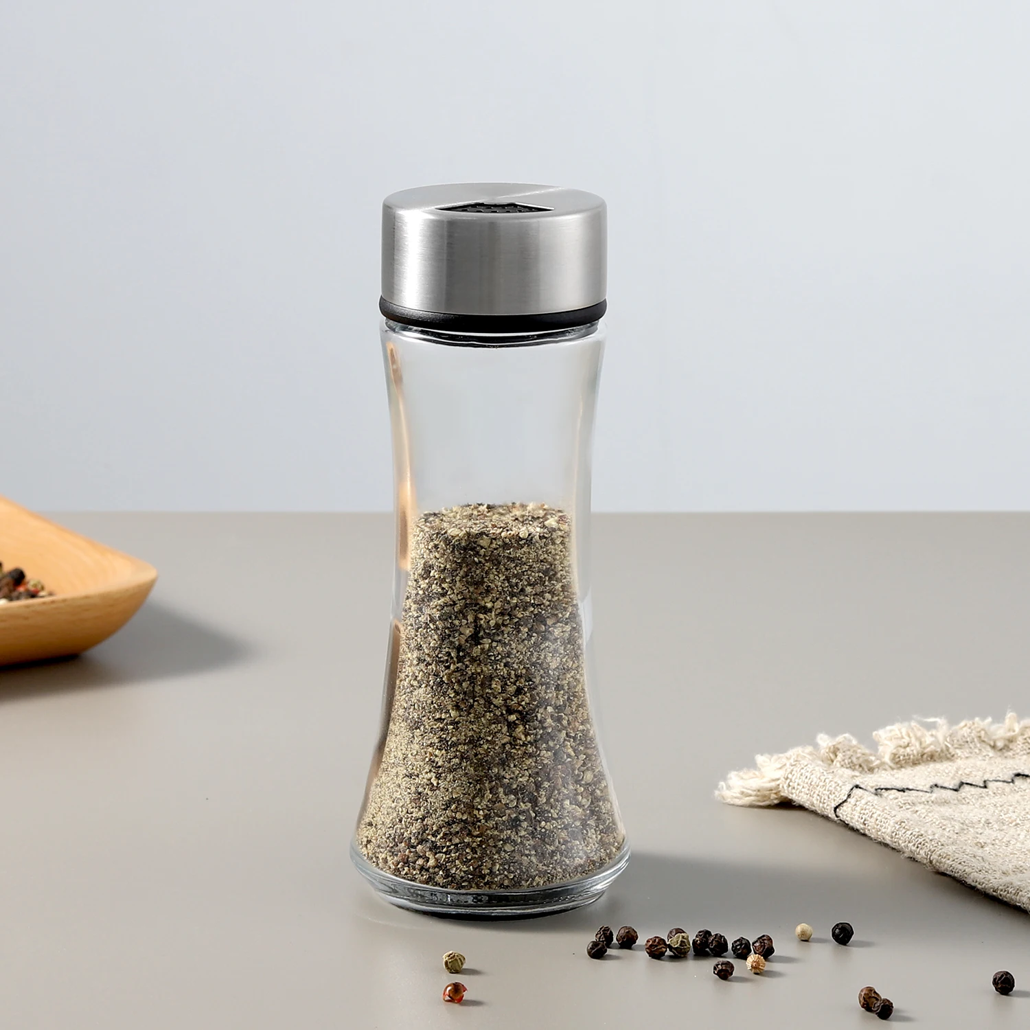 Dispensador de especias, salero y pimentero con botella de vidrio de 180 ml y tapa de acero inoxidable 304.
