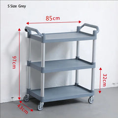 Carrito de cocina moderno de plástico PP, color negro y gris, con capacidad de carga de 200 kg, ideal para restaurantes y hoteles.