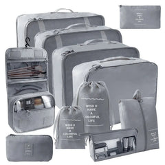 Customized 9-Piece Makeup Bag Set Fashionable Waterproof Foldable Canvas Toiletry Bag Logo Hook Zipper Closure Letter Pattern
